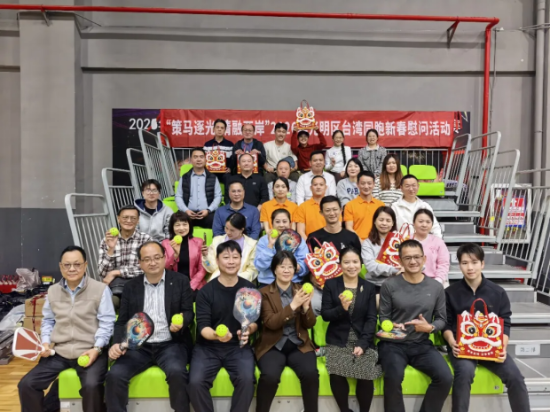 火红的灯笼挂满街头,新春的脚步越来越近。2月3日下午,光明区群众体育中心迎来了一场别开生面的温情相聚。30位在深台商台胞代表齐聚一堂,共同参与"策马逐光 情融两岸"2026年光明区台湾同胞新春慰问活动。此次慰问活动一改以往座谈交流的模式,创新采用匹克球趣味赛的互动形式,让各位台商台胞在忙碌的年末卸下疲惫,以运动为桥,在并肩协作、趣味比拼中拉近距离、凝聚同心。
