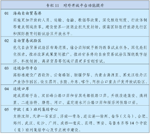加强港澳与内地经贸、科技、人文等合作,完善便利港澳居民在内地发展和生活政策措施。有序推进与内地金融市场互联互通,深化与内地产学研创新协同。深化粤港澳合作,持续推动重点领域合作实现突破,促进港口、机场和轨道交通协同发展,建设广州至珠海(澳门)高铁,推进港深西部铁路前期工作。深化琴澳一体化发展,高质量建设前海、南沙、河套等重大合作平台。建设澳门国际机场横琴前置货站,推进澳琴国际教育(大学)城建设,支持澳门高校在横琴延伸办学。健全香港、澳门在国家对外开放中更好发挥作用机制,支持港澳深度参与高质量共建“一带一路”,发挥专业服务优势协助企业“走出去”。发挥港澳在中西文明交流互鉴中的重要窗口作用。